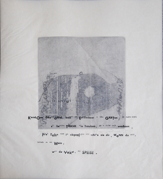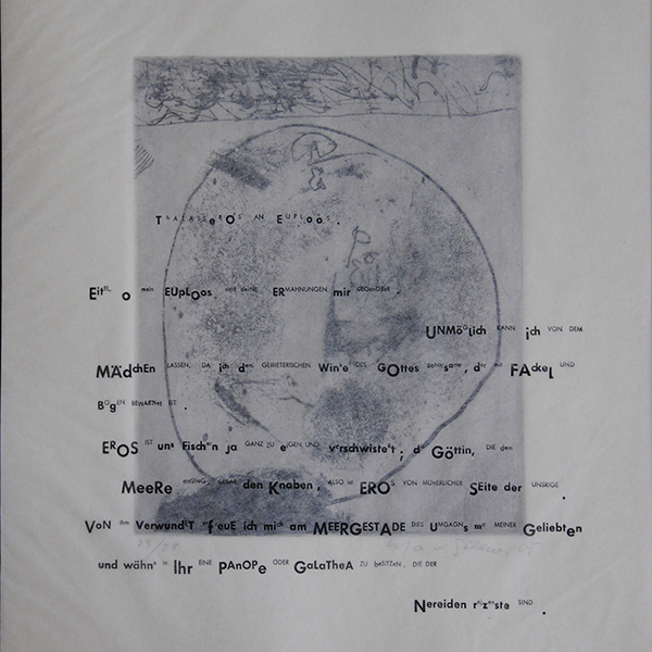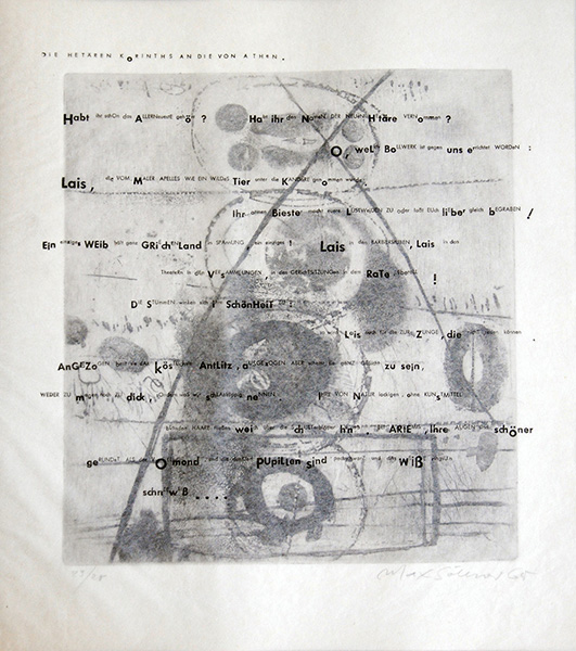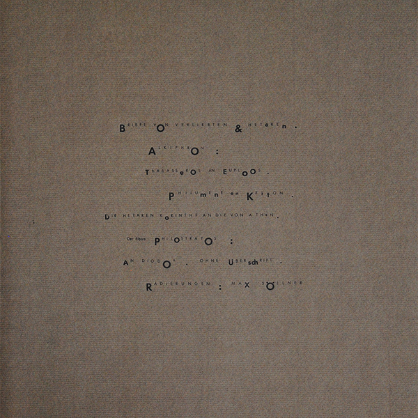 Aus dieser vergnüglichen Literatur entstand bei Max Söllner die Idee solchen literarischen Darstellungen bildliche Interpretationen folgen zu lassen. Zum literarischen Einfluss gesellt sich aber noch etwas anderes: Söllner fand in alten Setzkästen einer Druckerei eine Menge nicht mehr benötigte, unterschiedliche (Blei-)Buchstaben. Vor dem Druck auf fast transparentes Japanpapier wurden Buchstaben so unterschiedlich kombiniert, dass eine Art Paläografie entstand, die ein flüssiges LESEN unmöglich macht. Beim Lesen der Texte wird einem wegen der fehlenden Paläografie ganz schwindlig. So schwindelig muss es wohl auch den „Briefeschreibern“ gewesen sein, als sie die Briefe an die Hetären verfassten.