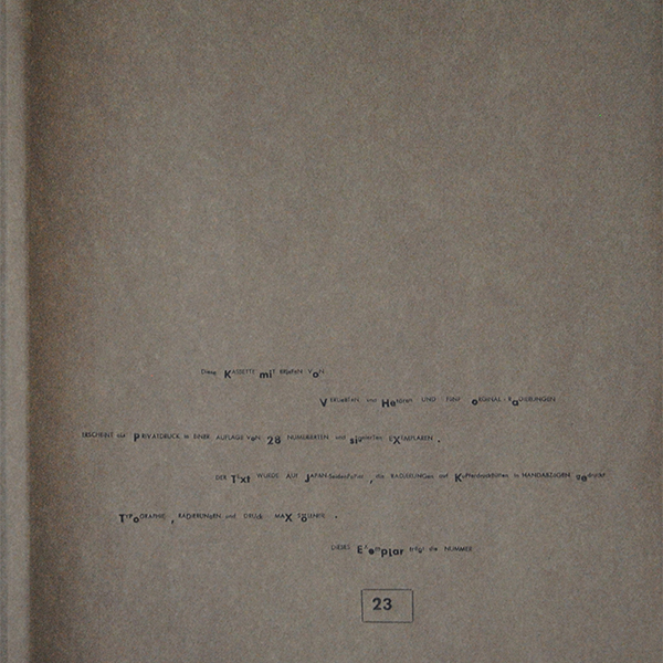 Feines, bedrucktes Japanpaier umhüllt fünf Radierungen, die in einer leinenbezogen Kassette ihren Platz finden.