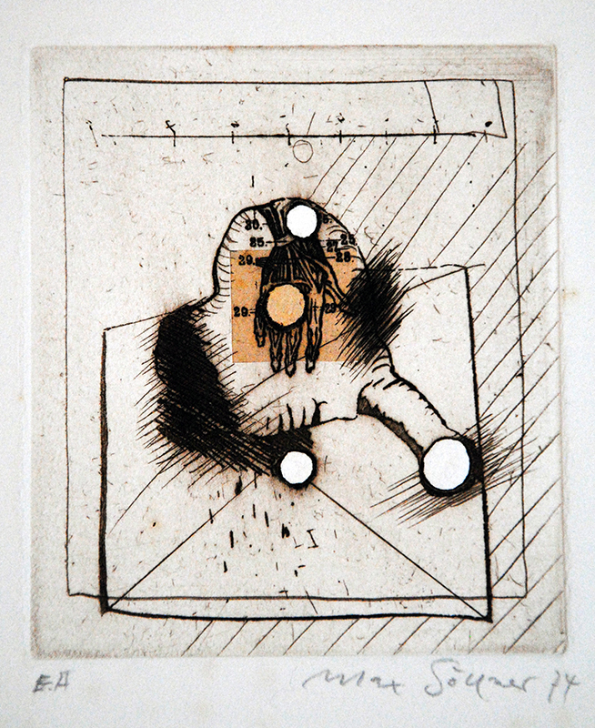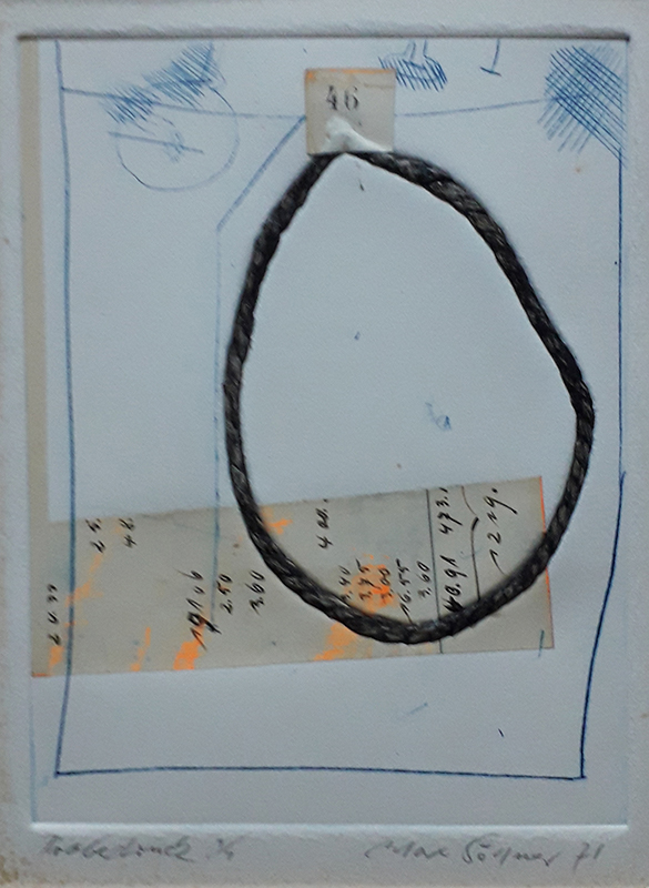 Egal ob Materialdruck, Radierung, Collage, etc., etc.. Jedes der Söllnerischen Kunstwerke – egal, ob klein- oder großformatig, hat ein Konzept. Ein Konzept, das sich durch Formen, Farben, Materialien definiert.
