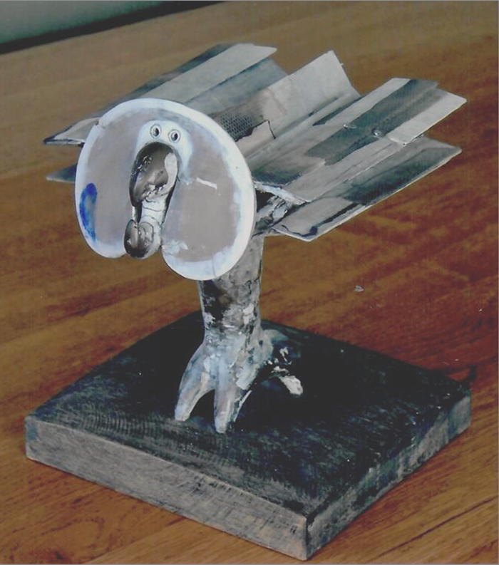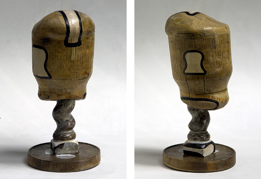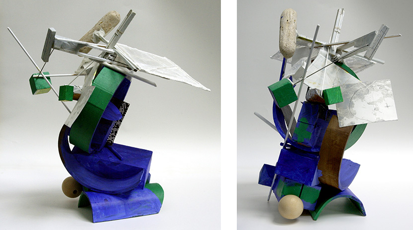 Zerlegt man eine Kleinplastik in ihre Einzelteile, so findet man Formularschnipsel aus vergilbten Kassenkladden, Fetzen großväterlicher Rechnungen – einst fein säuberlich mit spitzer Feder erstellt; kurze Papierstreifen, Würfel oder Kugeln aus Holz, Mikadostäbchen, alte Korkenzieher, etc., etc..
