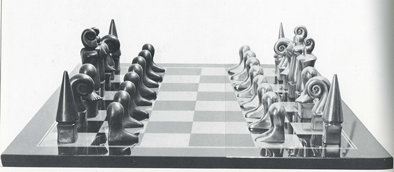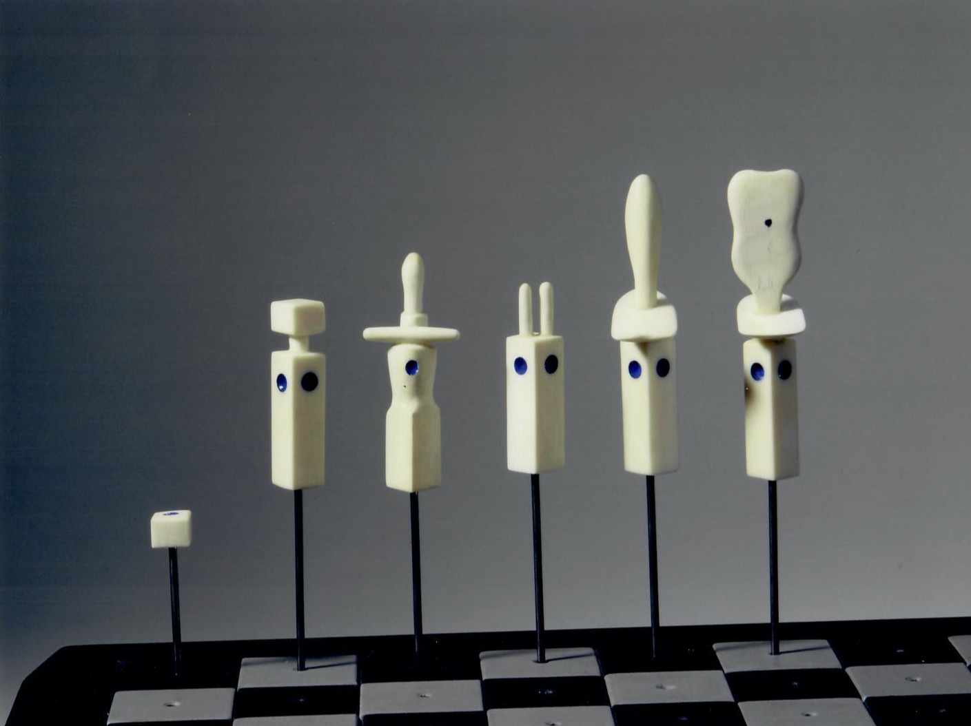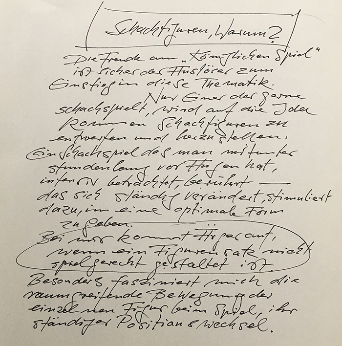 Ein Schachspiel, das man mitunter stundenlang vor Augen hat, intensiv betrachtet, berührt, das sich ständig verändert, stimuliert dazu, um eine optimale Form zu geben.
