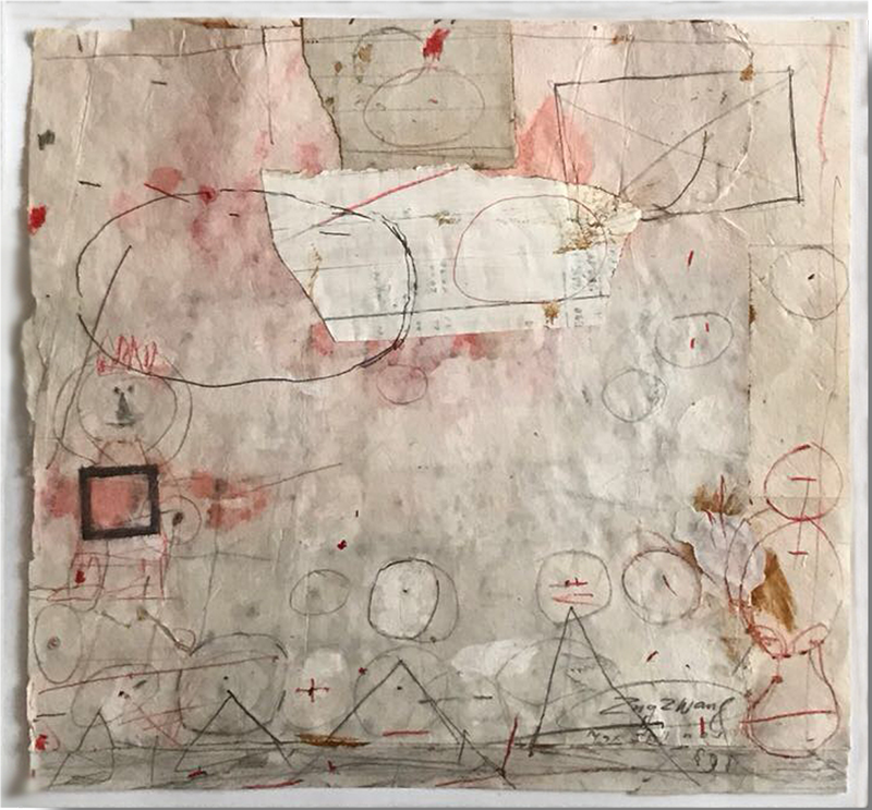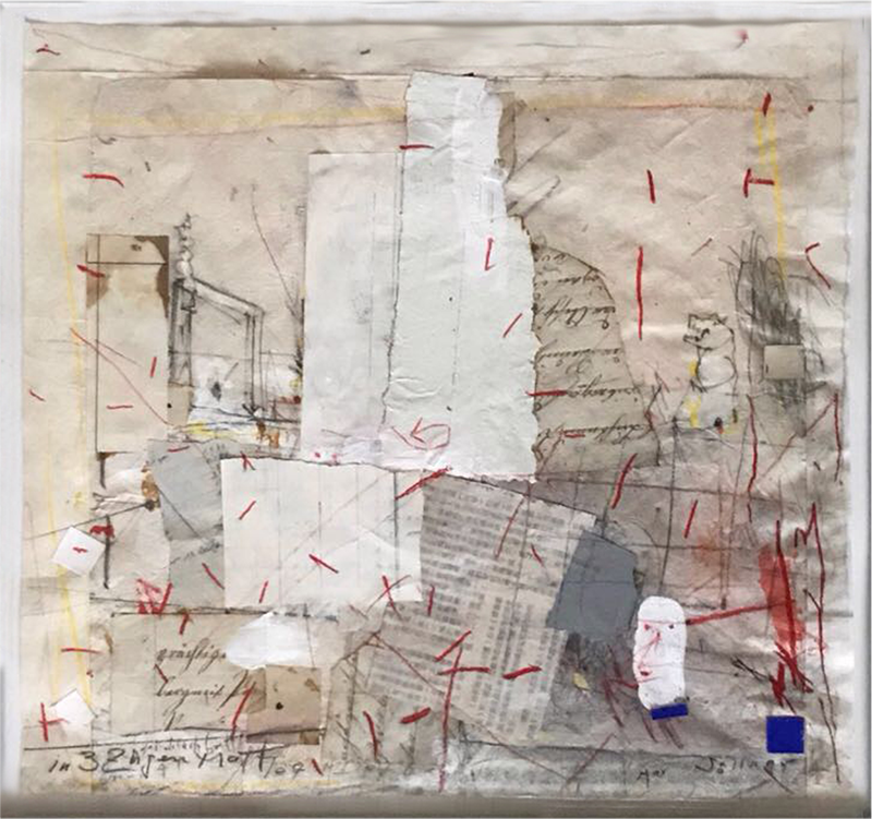 Zeichenkarton mit verschiedenen Materialien collagiert